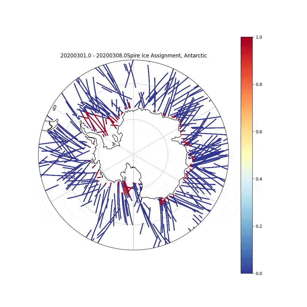 Spire’s sea ice extent measurements have the capability to distinguish sea ice from open water in order to map sea ice coverage. This also allows us to delineate the marginal ice zone (MIZ), which is a transitional region between open sea and dense drift ice.